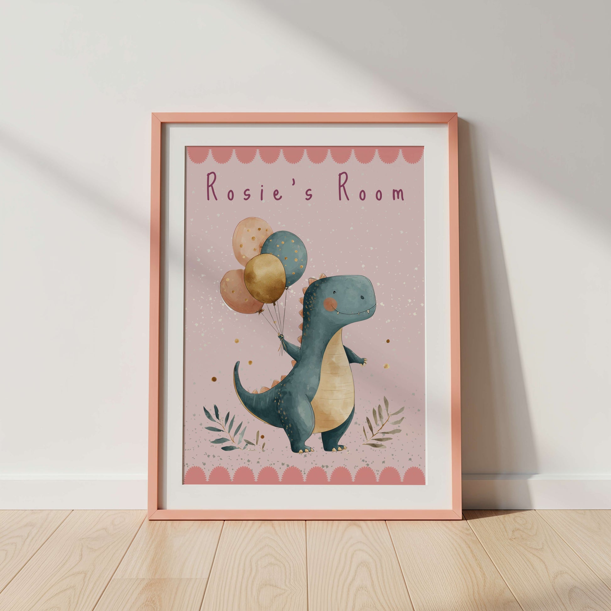 - Artwork Name: Personalised Pink T-Rex Dinosaur Print