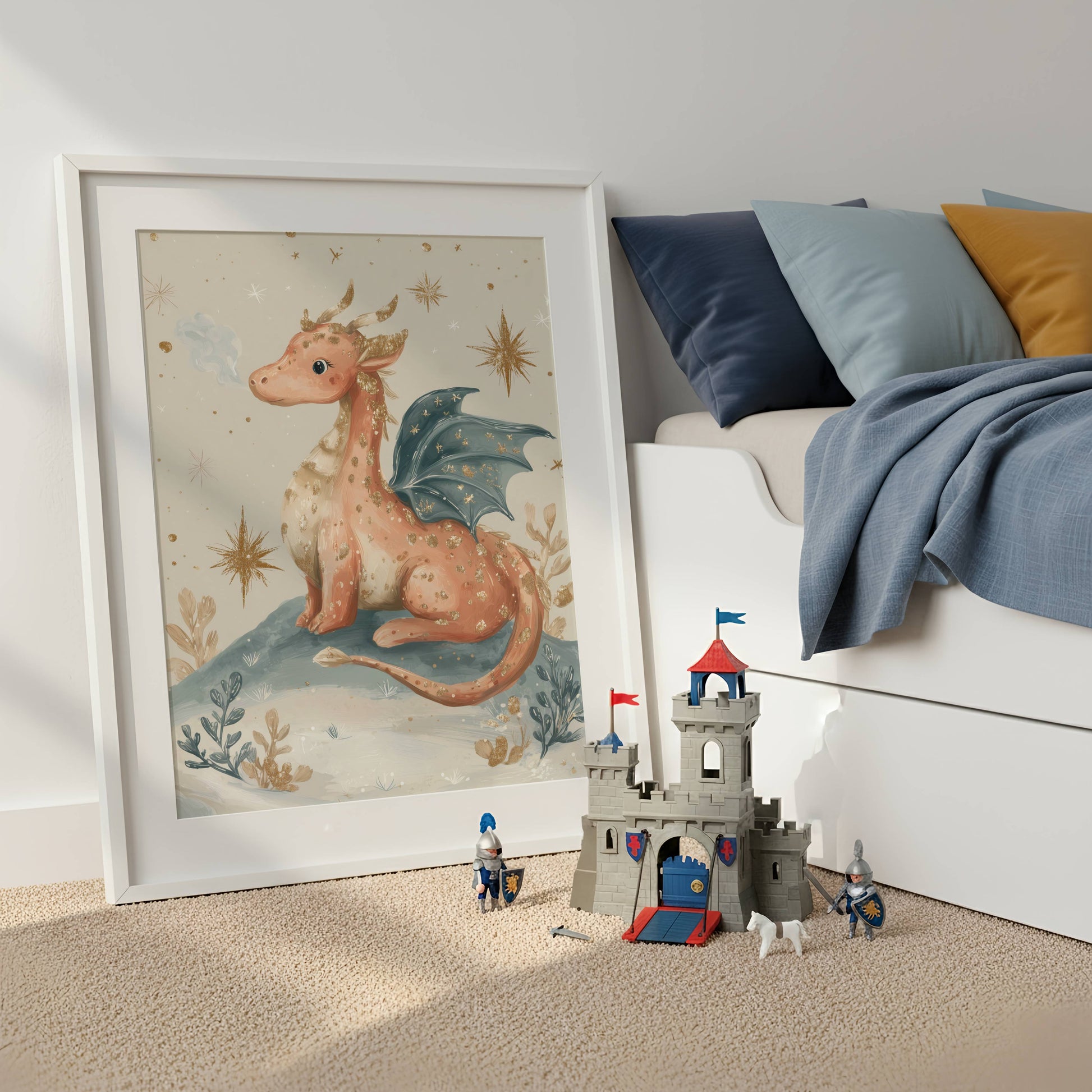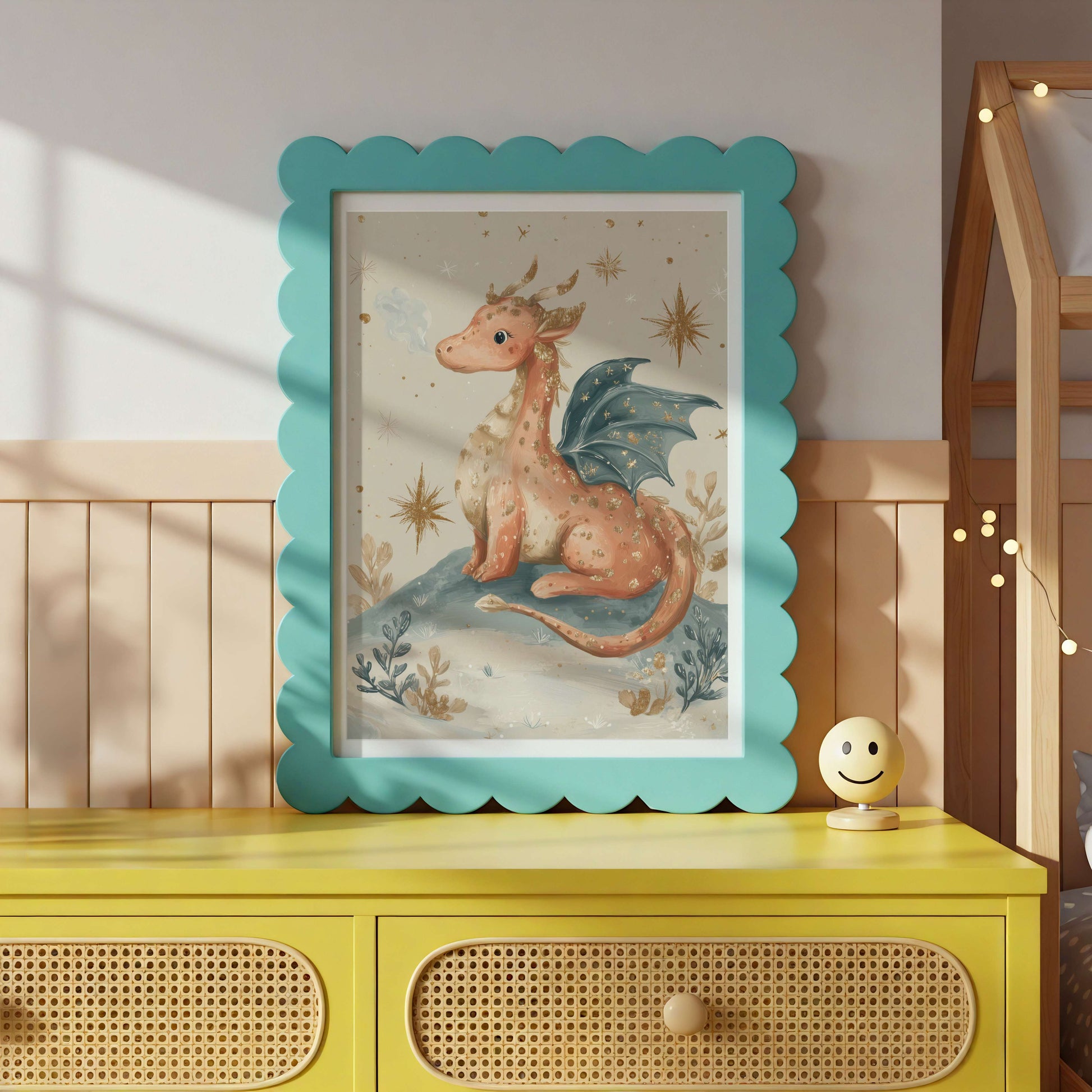 Illustrated in a gentle fantasy palette with whimsical details, this dragon artwork is perfect for nurseries, children’s bedrooms, or cosy reading corners. Whether you’re creating a fantasy-themed nursery or adding a touch of magic to a gallery wall, this print invites imagination to grow. Also available to buy as a set of four prints.
